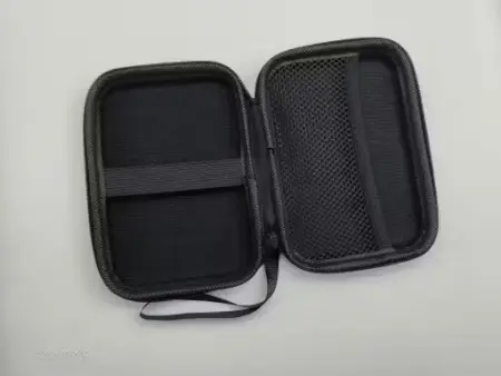 EVA material hard drive pouch with shockproof, anti-static lining. Compatible with 2.5-inch drives, USB cables, and earphones. Slim and portable.